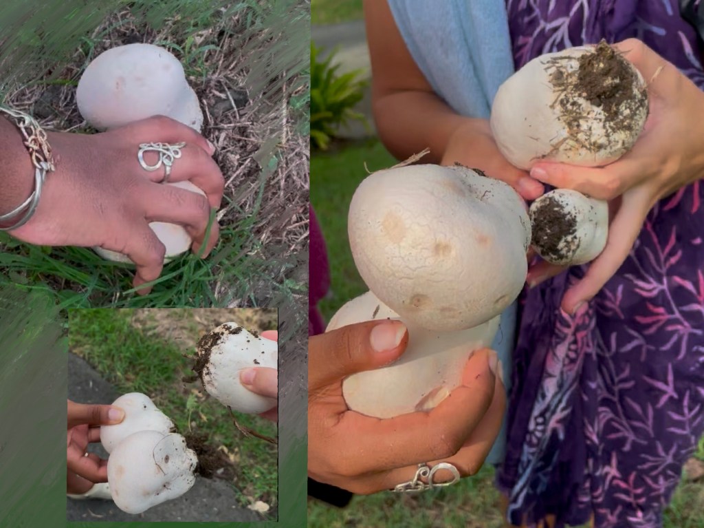 my friends and I were on our way back from the beach one day, and we found beautiful puff ball mushrooms growing in someone’s yard. of course we snatched them and ran home to cook them up.